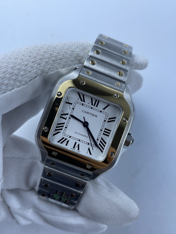 (준비완료/특급배송)NO.1305/ BV공장 까르띠에 산토스 2018 미디움 스틸 옐로우골드콤비 화이트다이얼 스마트링크 브슬 35MM
